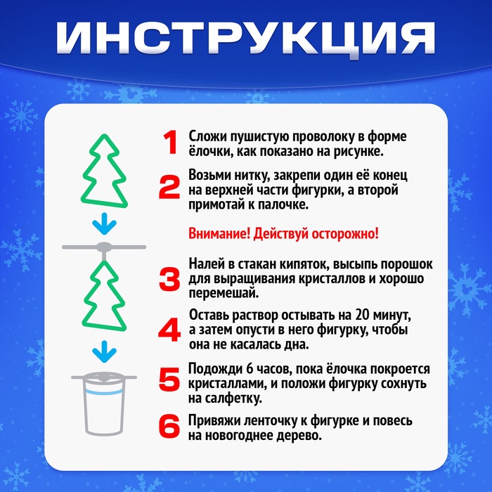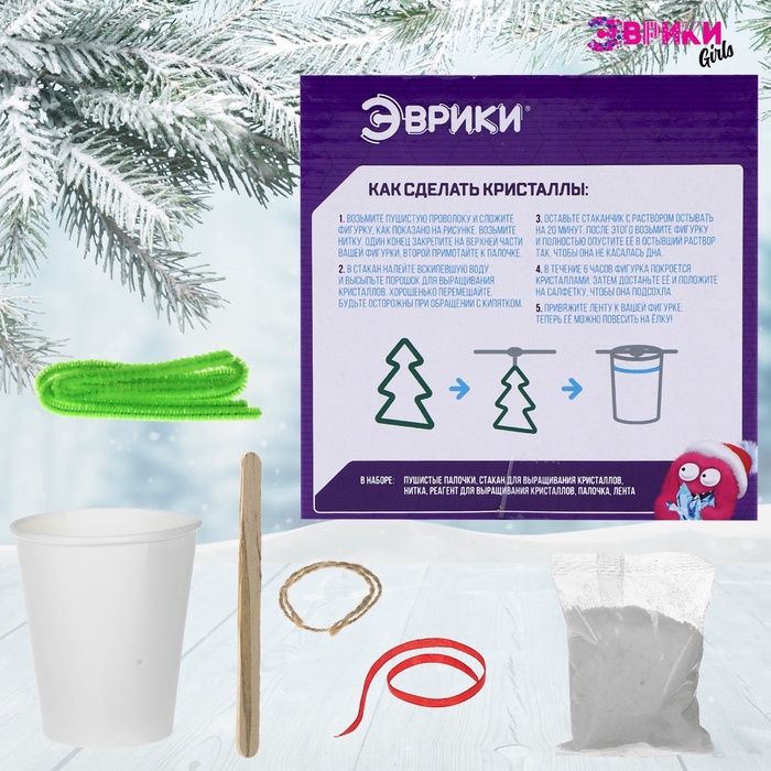 С набором «Новогодняя ёлка» ребёнок увидит, как растут кристаллы! Этот процесс не просто интересен — он завораживает, а готовый результат станет настоящим украшением детской комнаты.