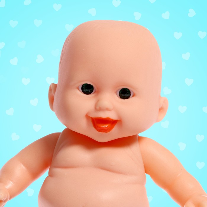 У куклы двигаются руки, ноги. Ребёнок придумает множество игр с пупсом и будет учиться заботе и ответственности. Рост куклы — 12 см. Её можно купать. Игрушка выполнена из пластика.