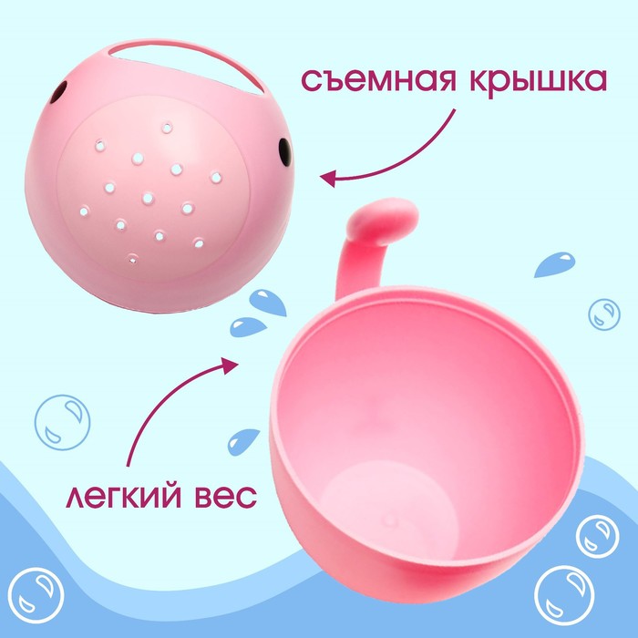 Ковш пластиковый для купания и мытья головы, детский банный ковшик «Кит», 400 мл., с леечкой, цвет розовый