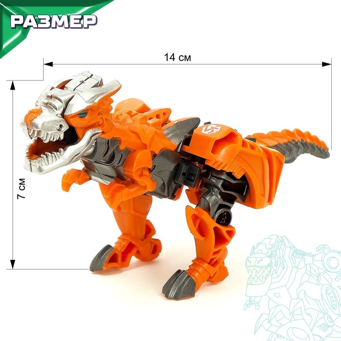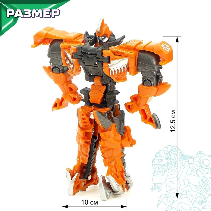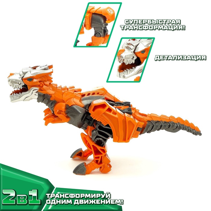 - Мгновенная трансформация — тираннозавр ↔ робот (12,5 см).