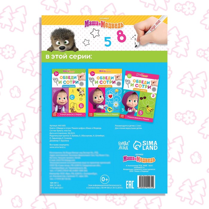 Яркие иллюстрации с любимыми героями из мультфильма «Маша и Медведь» сделают занятия веселее и интереснее.