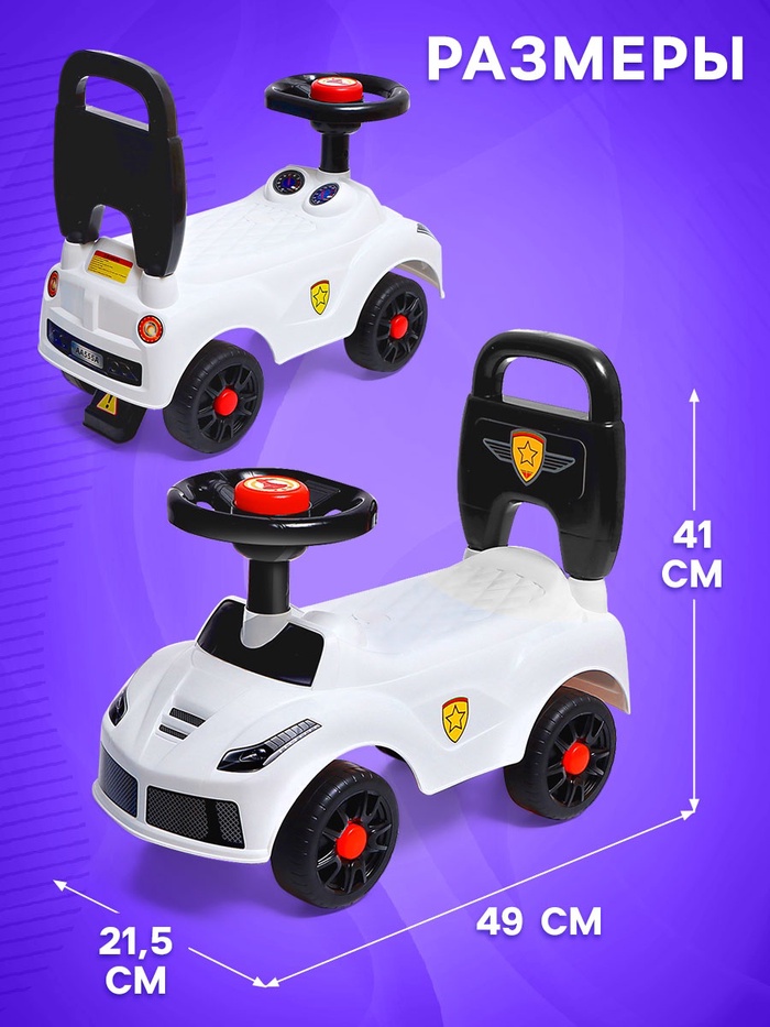 Толокар - пушкар детский «Ночной гонщик. Машинка», звуковые эффекты, цвет белый