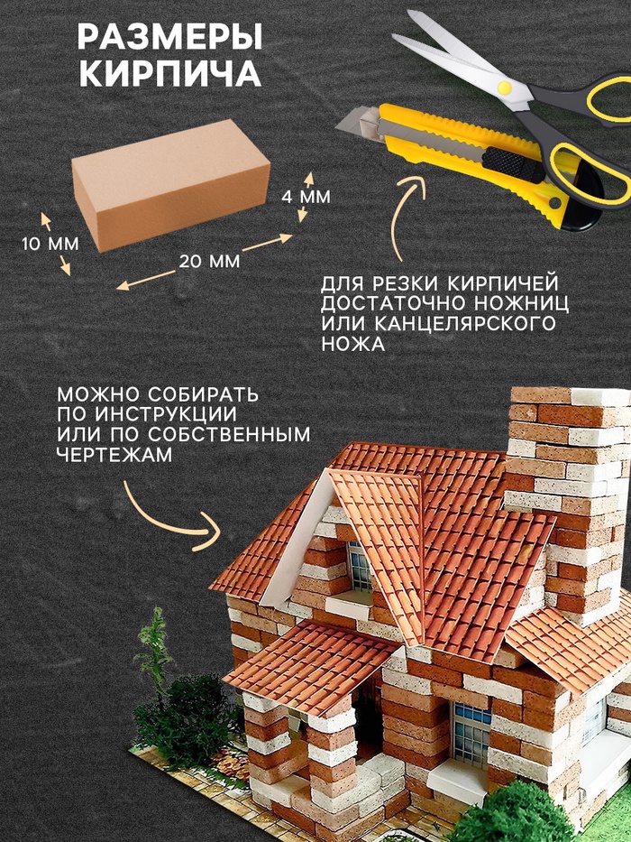 Конструктор для творческого строительства — набор миниатюрных кирпичиков, идеально подходящий для создания архитектурных моделей и собственных проектов. Детали выполнены из легкого полимерного материала, напоминающего камень. Конструктор дает возможность возводить масштабные и детализированные строения, которые легко собираются и также легко изменяются, что позволяет воплощать самые разные задумки и архитектурные решения.