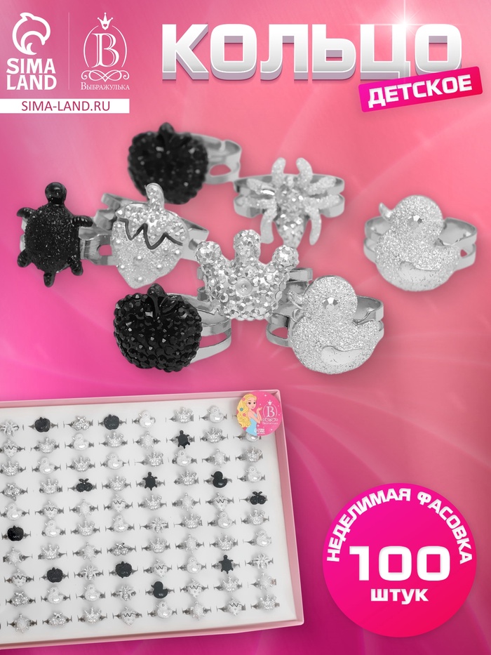 Кольцо «Выбражулька», металлик, форма МИКС, серебристо-чёрное, безразмерное