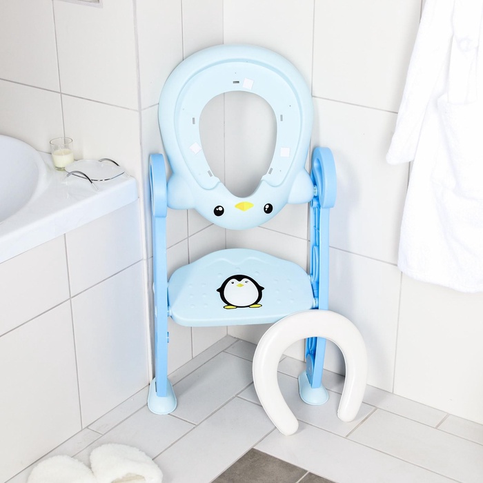 Конструкция имеет удобные поручни, поэтому ребенок может самостоятельно садиться на унитаз и слезать с него. Кроме того, ступенька служит подставкой для ног, когда малыш сидит на унитазе.