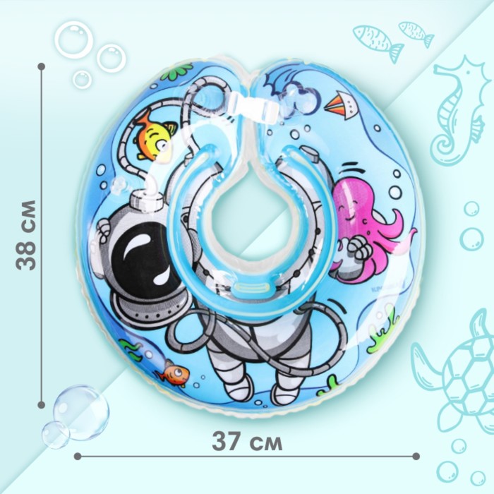 Круг для плавания новорожденных на шею Крошка Я «Подводник», надувной, с ручками, голубой