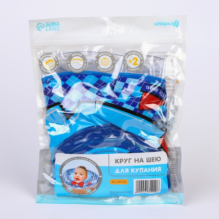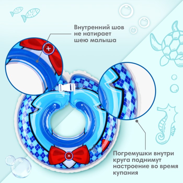 Круг для плавания новорожденных на шею Крошка Я «Джентельмен», надувной, с ручками, голубой