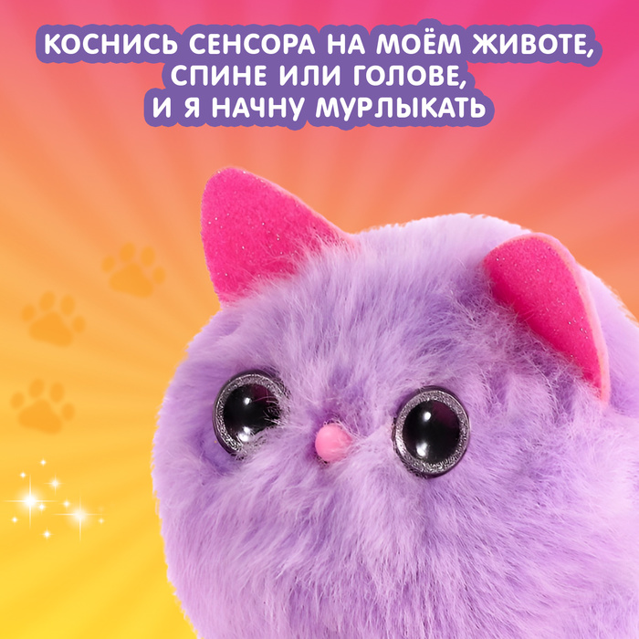 - Если малышка погладит игрушку по животику, головке и спинке, то любимец замурлычет как живая кошечка.