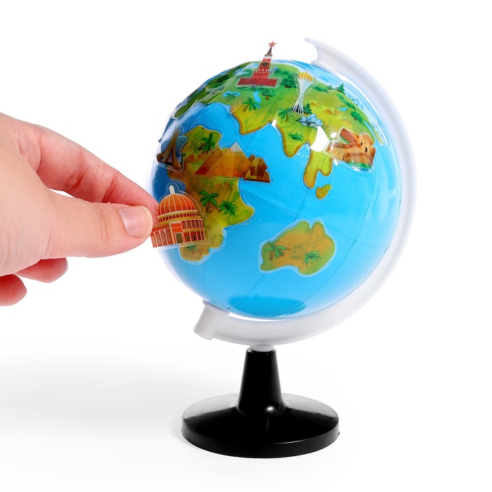 Глобус детский с наклейками «Изучаем мировые достопримечательности»