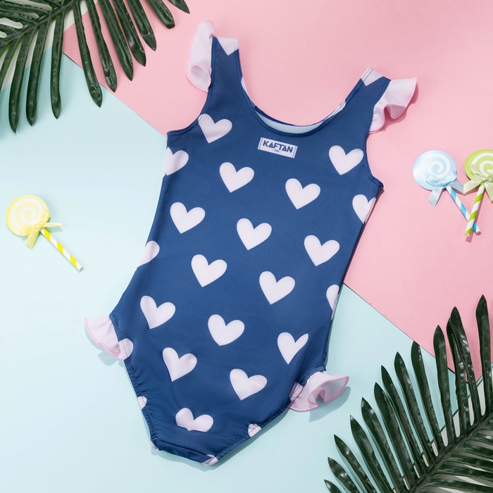 Купальник для девочки слитный KAFTAN «Сердечки», синий, размер 34 (122-128 см)