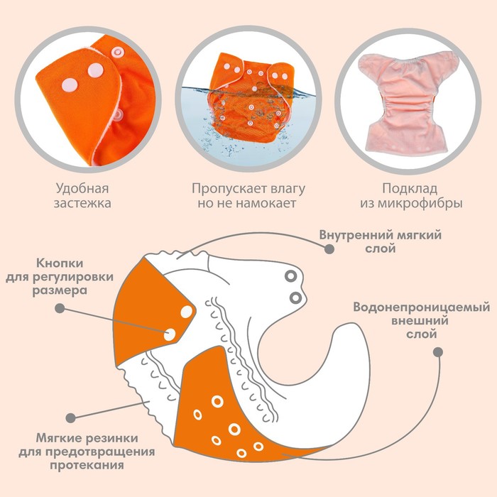 Многоразовый подгузник, 3-8 кг, оранжевый, Крошка Я