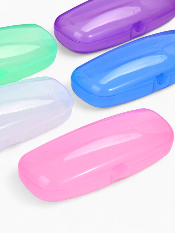 Футляр для очков длиной 16 см, изготовленный из прочного пластика с жёстким корпусом. Прозрачный дизайн в удобном размере и разнообразие цветовых решений «МИКС». Простота использования благодаря застёжке-хлопушке. Ширина изделия 5,5 см позволяет хранить очки любого размера.*