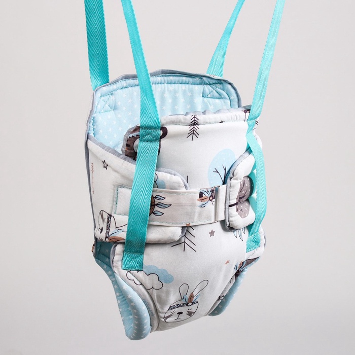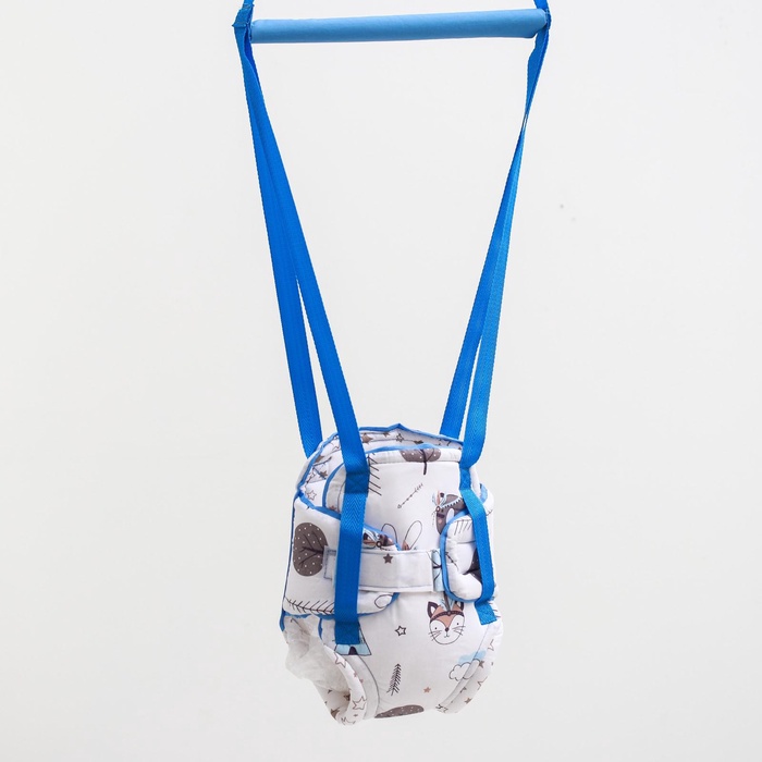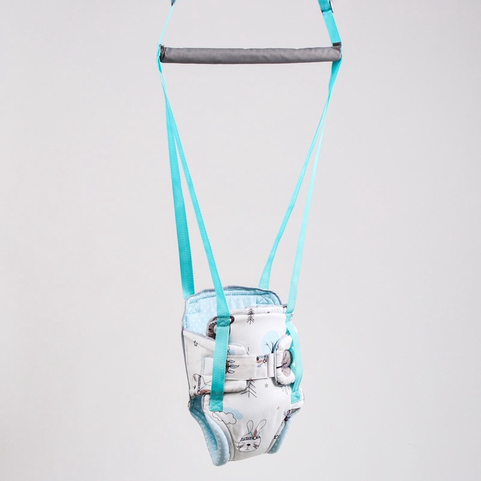 Посадите полугодовалого кроху в сиденье-штанишки. Малышу понравится активная игра, он будет подпрыгивать и качаться. Размер посадочного места можно настроить индивидуально, а за перекладину ребёнку будет удобно держаться.