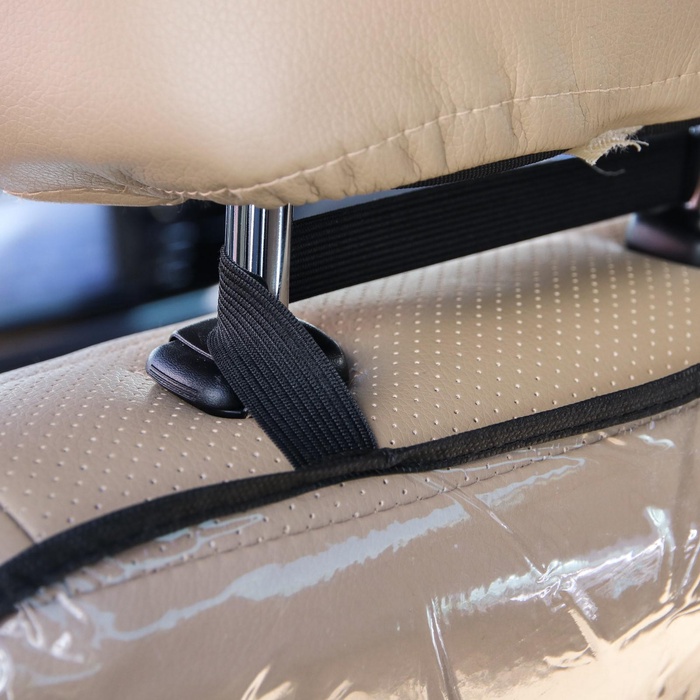 Аксессуар имеет удобное крепление: зафиксируйте чехол на подголовнике и в нижней части сиденья с помощью двух резинок.