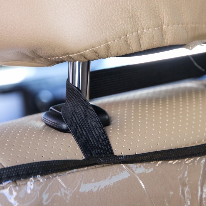 Аксессуар имеет удобное крепление: зафиксируйте чехол на подголовнике и в нижней части сиденья с помощью двух резинок.