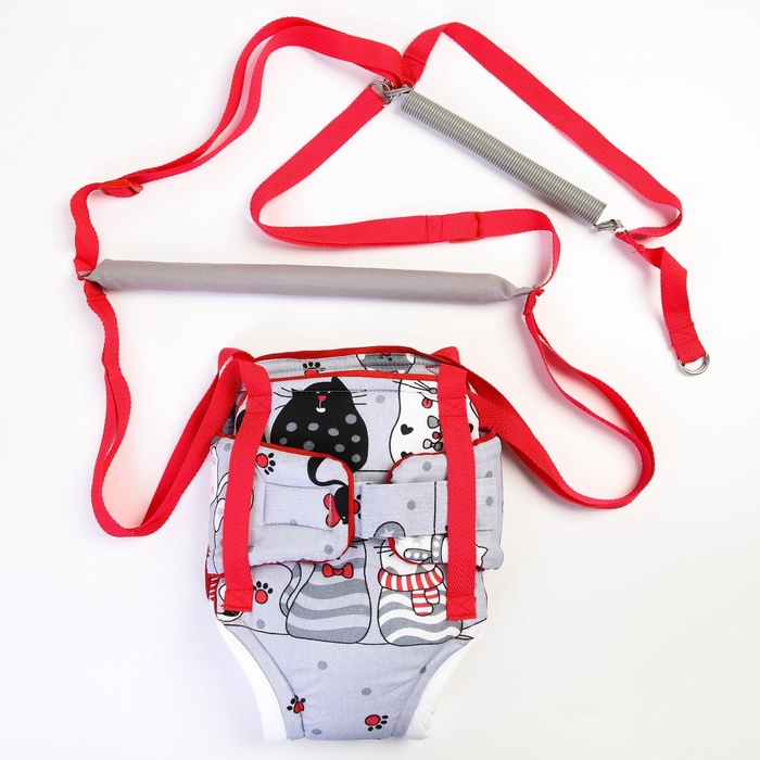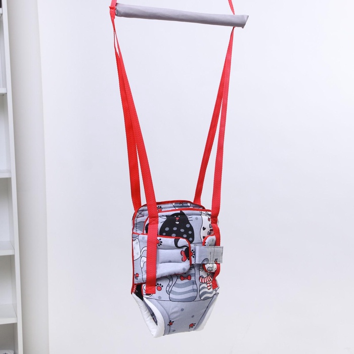 Посадите полугодовалого кроху в сиденье-штанишки. Малышу понравится активная игра, он будет подпрыгивать и качаться. Размер посадочного места можно настроить индивидуально, а за перекладину ребёнку будет удобно держаться.