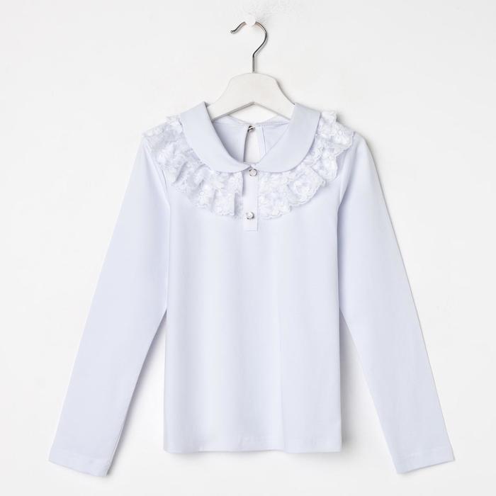 Блузка для девочки школьная, с кружевным воротником, белая, рост 152 см