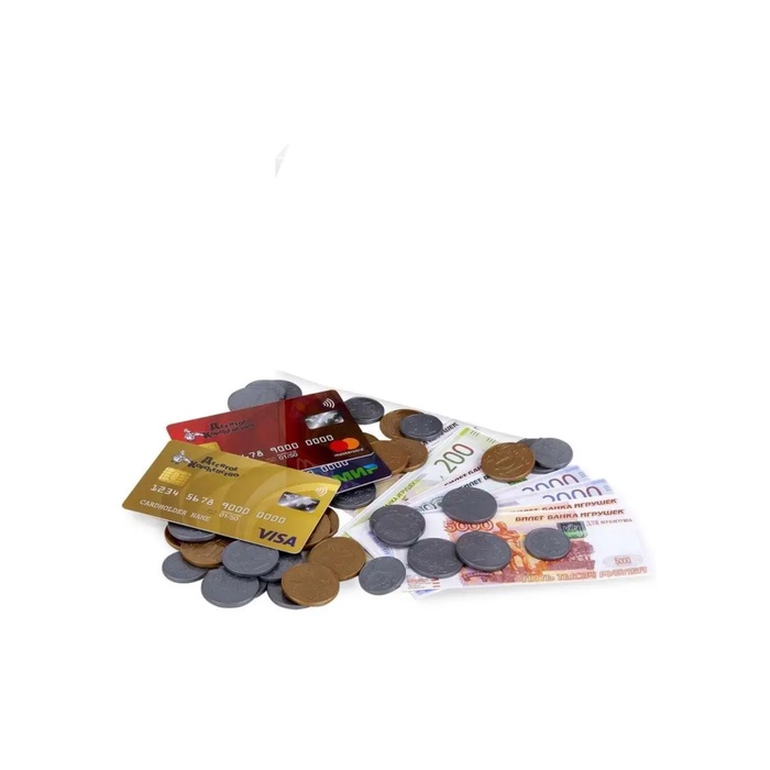 Организовать и провести подобные игры вам поможет этот набор, который представляет собой копии монет, банкнот и банковских карт для развлекательных и образовательных игр по финансовой грамотности.