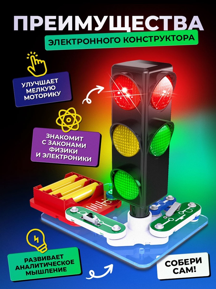 Электронный набор для сборки светофора — это увлекательный способ для детей познакомиться с основами физики и электроники, развивая при этом логику, усидчивость и внимание.