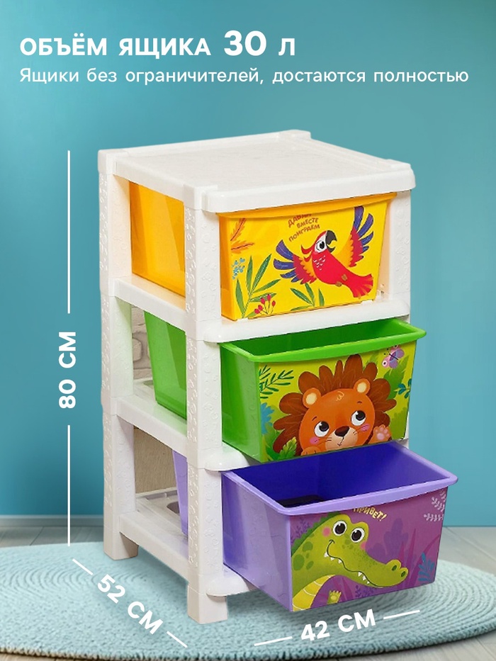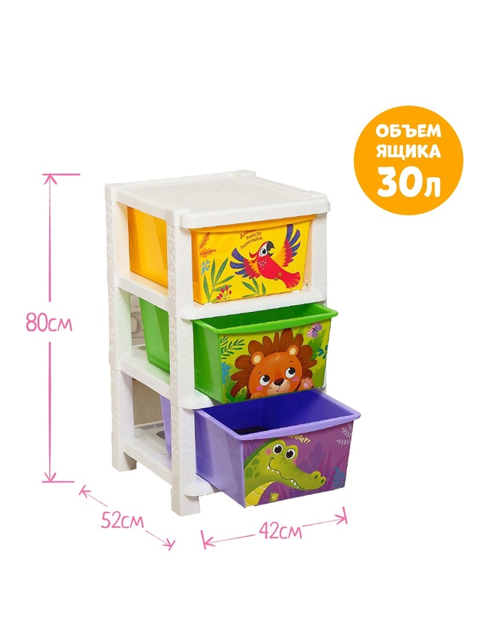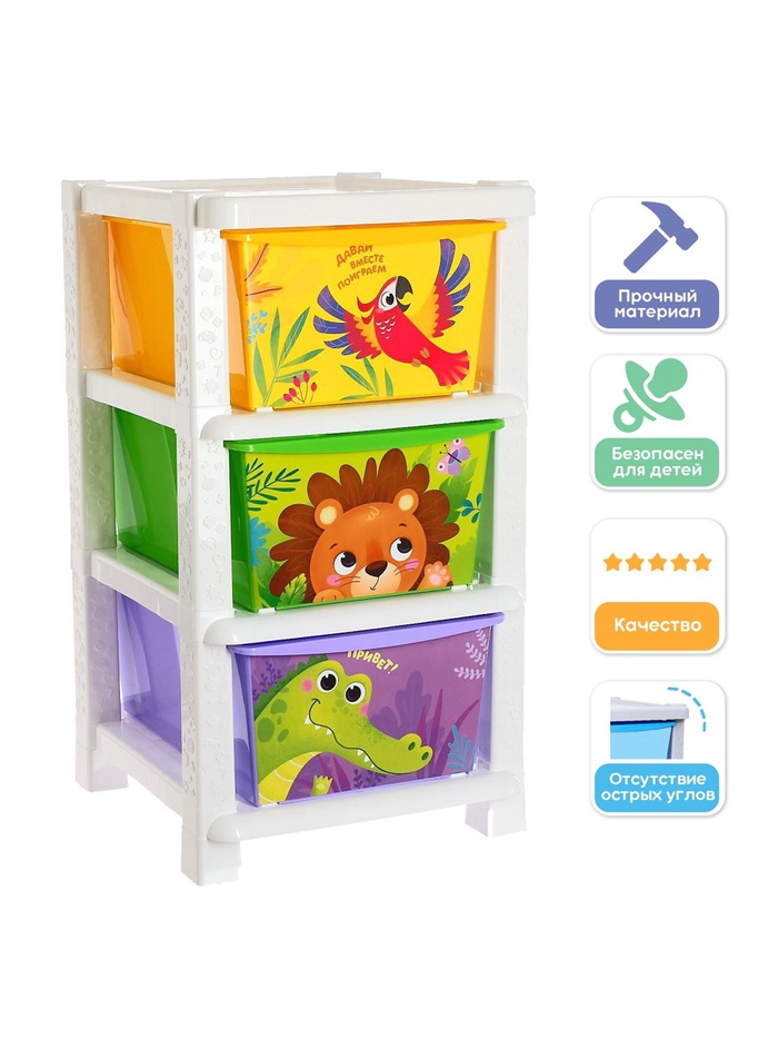 Комод детский «Дружные зверята», 3 секции