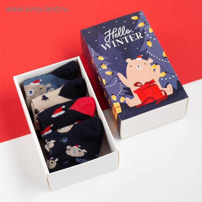Набор новогодних детских носков Крошка Я «Мишка», 4 пары, 12-14 см
