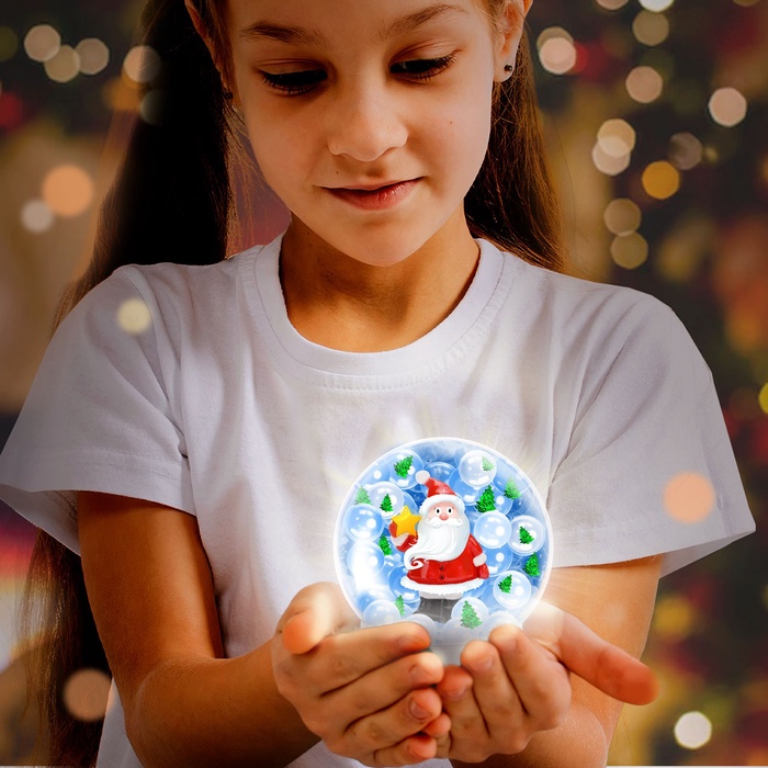 Рассматривайте содержимое волшебного космического шара вместе с ребёнком. Обратите внимание на появляющуюся и исчезающую игрушку внутри.