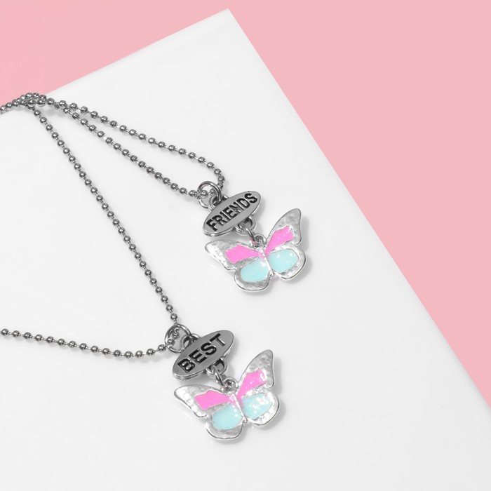 Кулоны «Неразлучники», бабочки, 40 см, цвет бело-розовый в серебре