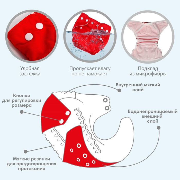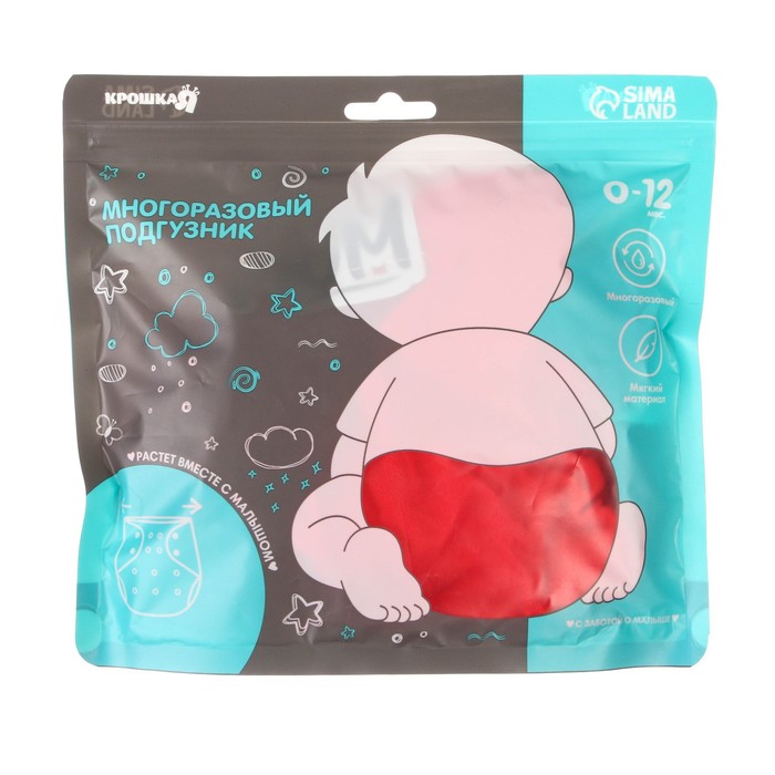 Многоразовый подгузник «Я люблю маму», 3-15 кг, красный, Крошка Я