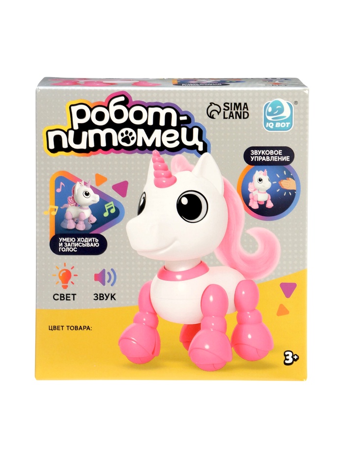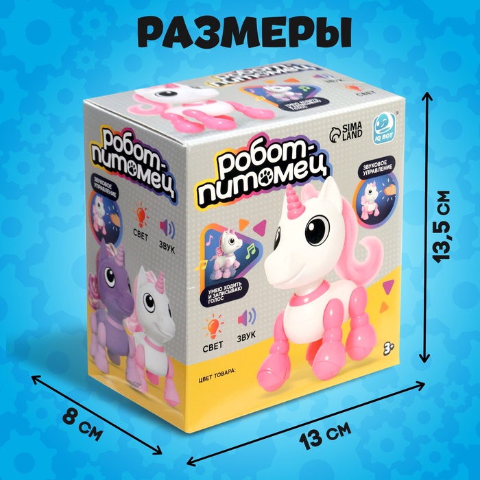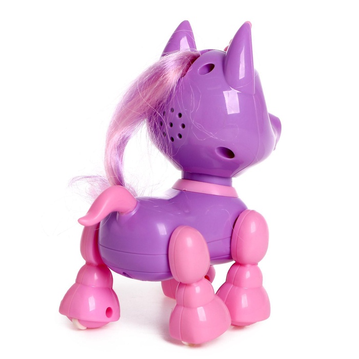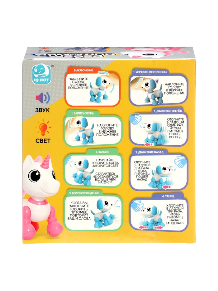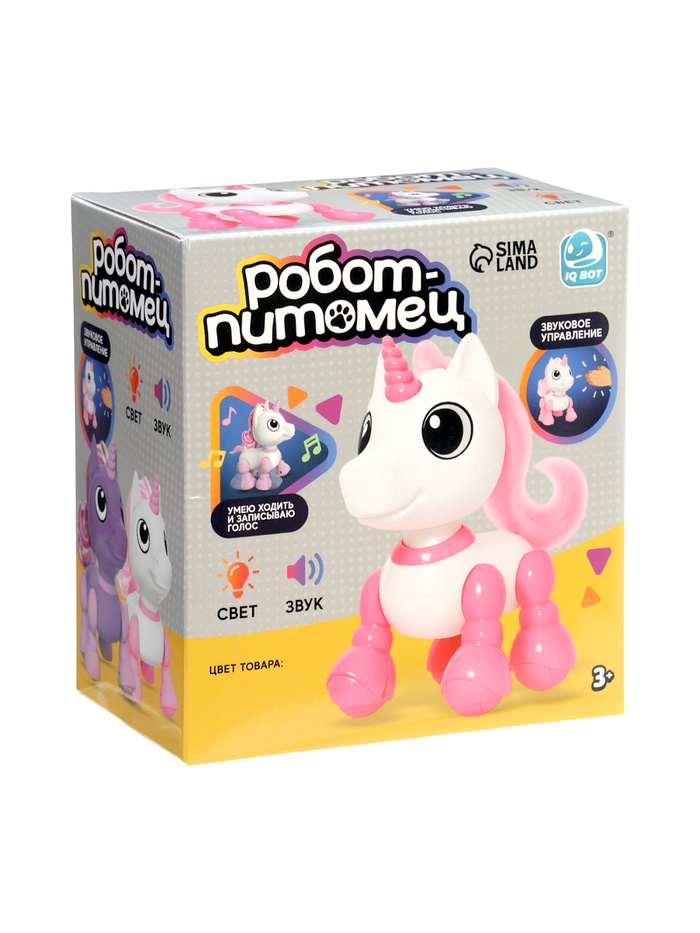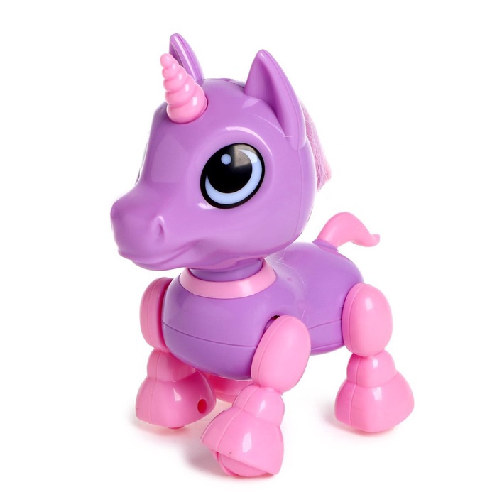 Робот единорог «Питомец» IQ BOT, интерактивный: с записью звуков, реагирует на хлопки, звук, свет, на батарейках, фиолетовый