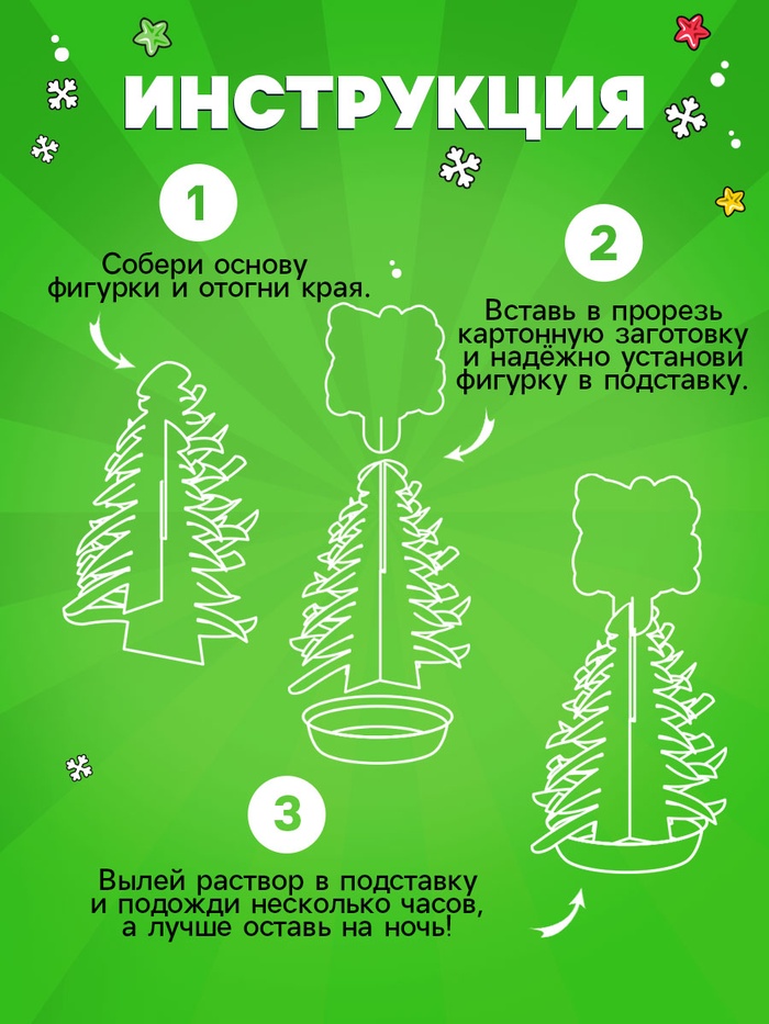 Набор для опытов «Ёлочка. Чудесные кристаллы» — то, что нужно для полезного и интересного досуга! Такой подарок поможет ребёнку скрасить ожидание Нового года, а также позволит создать необычную игрушку и понаблюдать за процессом кристаллизации.
