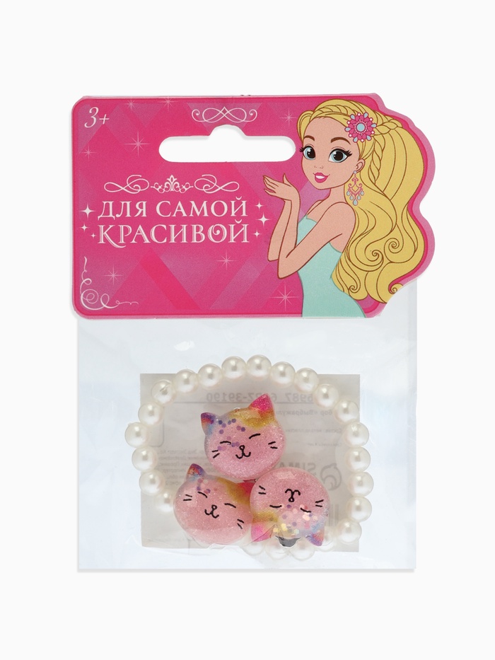 Набор детский «Выбражулька», 2 предмета: клипсы, браслет, котик, белы-розовый