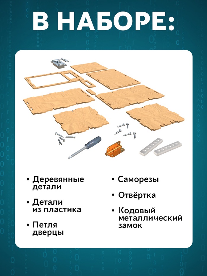 Набор для опытов даст ребёнку возможность попробовать себя в роли мастера-профессионала и своими руками смастерить настоящий сейф. Юный экспериментатор познакомится с основами инженерии и конструирования. Процесс отвлечёт его от гаджетов и научит работать руками.