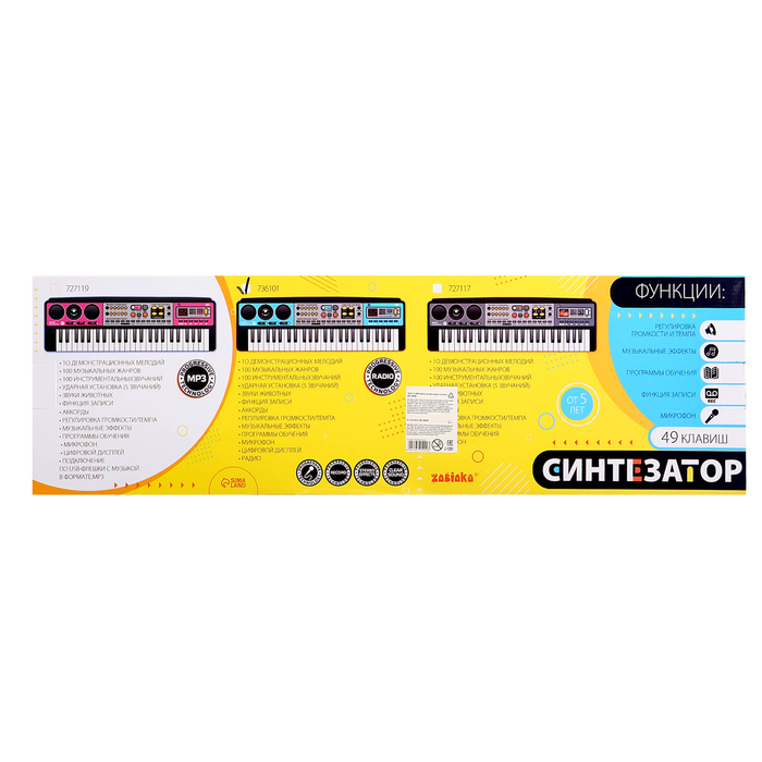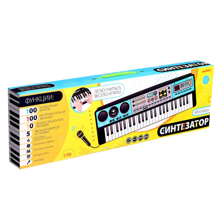 Синтезатор детский с микрофоном ZABIAKA «Музыкальный взрыв», 49 клавиш, работает сети и от батареек
