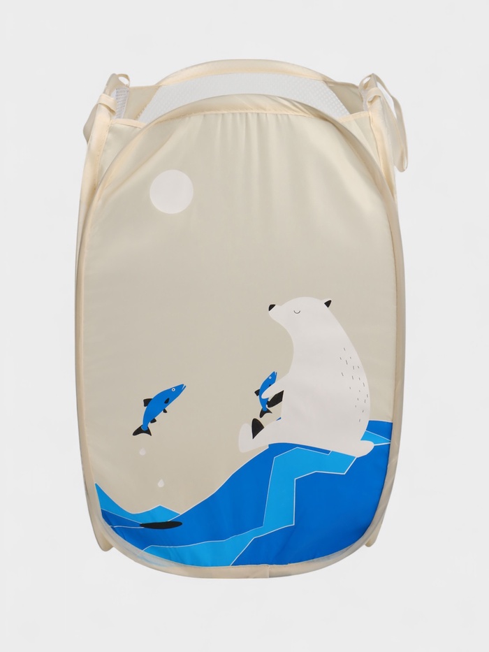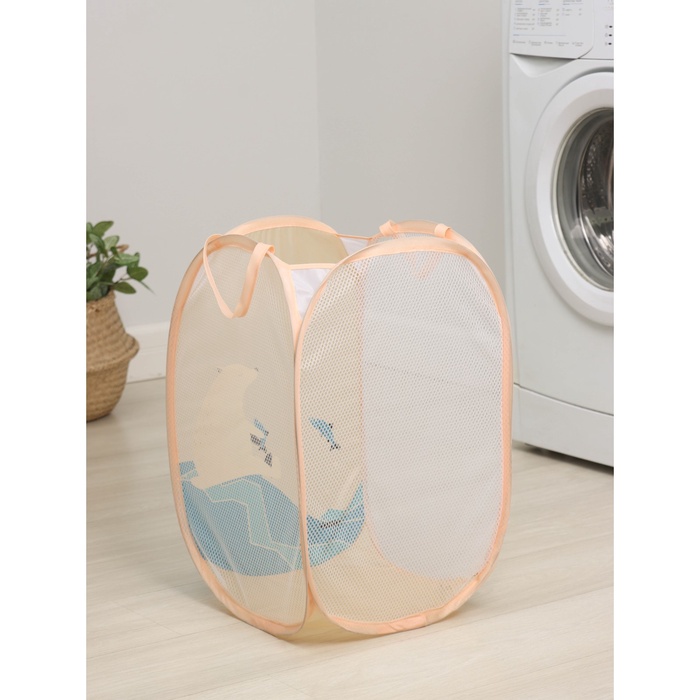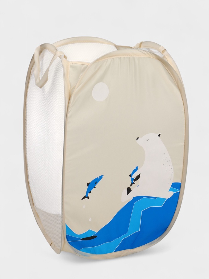 Корзина - сетка складная Доляна «Северный мишка», 32×32×52 см, бежевая