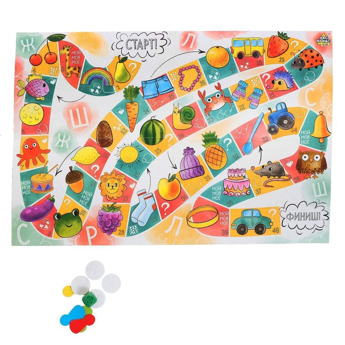 Логопедическая игра-ходилка превращает обучение в весёлое приключение для детей от 3 лет. Игровое поле с яркими картинками помогает отрабатывать сложные звуки [р], [л], [с], [ж], [щ] в непринуждённой форме. Просто бросайте кубик, передвигайте фишки и выполняйте задания — так ребёнок незаметно для себя улучшает произношение.