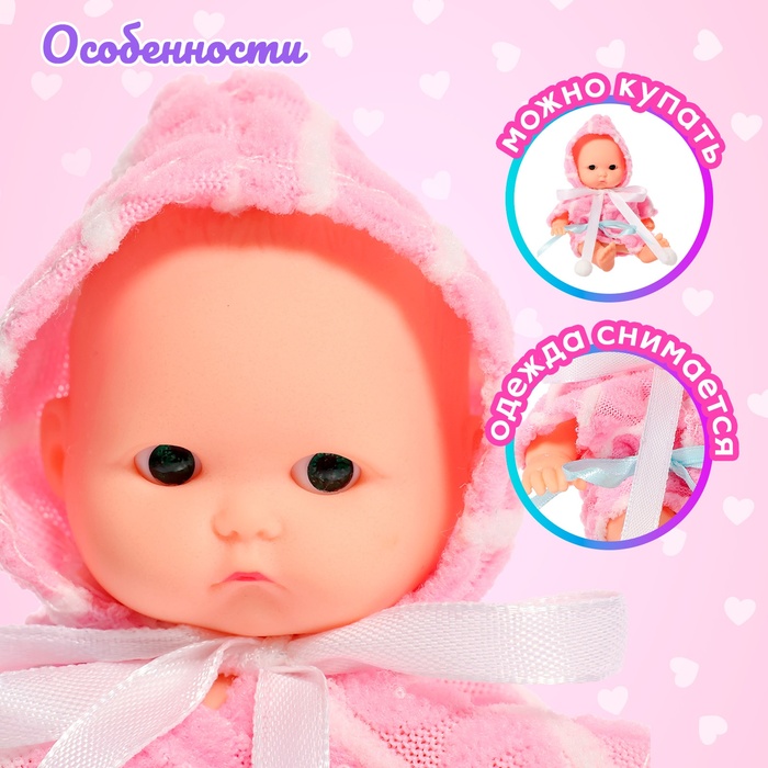 Пупс полностью резиновый, его можно купать. Одежда снимается.