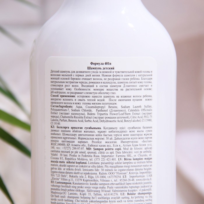 - Не содержит агрессивных химических веществ, сульфатов и искусственных красителей, что делает его идеальным для ежедневного использования на чувствительной коже головы младенцев и детей.