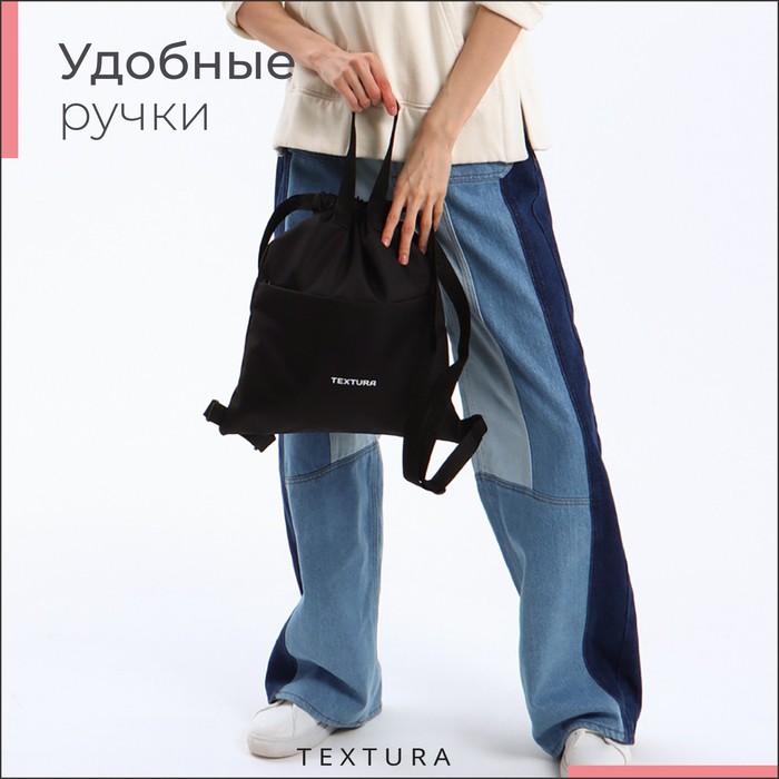 Мешок - сумка для обуви TEXTURA на стяжке, с карманом, размер 36×1×39 см, чёрный