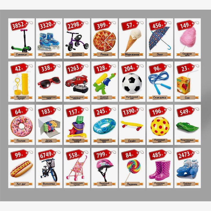 - Формат ролевой игры: участники по очереди становятся продавцами и покупателями. Такой игровой процесс делает настольную игру для детей динамичной и понятной даже для самых маленьких участников.