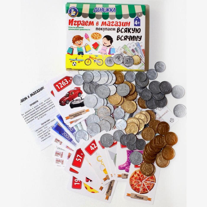Первый опыт обращения с деньгами — через игру. Настольная игра «Играем в магазин» — это детская экономическая игра, где ребенок примеряет роль покупателя и продавца. Простые игровые ситуации напоминают настоящий поход в магазин: выбрать товар, рассчитать стоимость, обменять купюры и получить сдачу. Формат семейной настольной игры превращает обучение в спокойное и увлекательное занятие для детей и родителей.