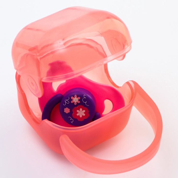 Используйте для хранения пустышки специальный контейнер. В нём маленький предмет не потеряется, не испачкается и будет всегда под рукой.Аксессуар пригодится вам на прогулках и в дороге: поместите футляр в сумку или карман коляски.Товар изготовлен из безопасного пластика. Подходит для детей с рождения.