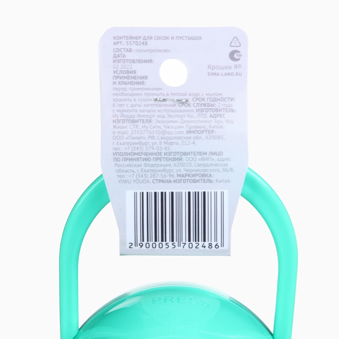 Используйте для хранения пустышки специальный контейнер. В нём маленький предмет не потеряется, не испачкается и будет всегда под рукой.Аксессуар пригодится вам на прогулках и в дороге: поместите футляр в сумку или карман коляски.Товар изготовлен из безопасного пластика. Подходит для детей с рождения.