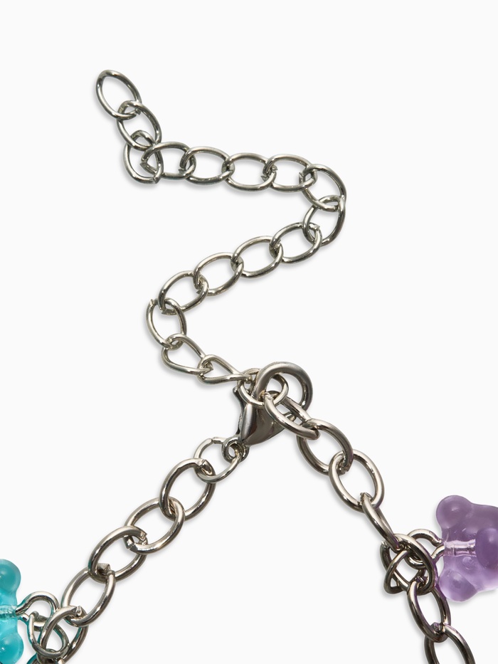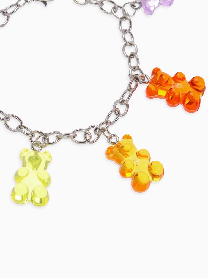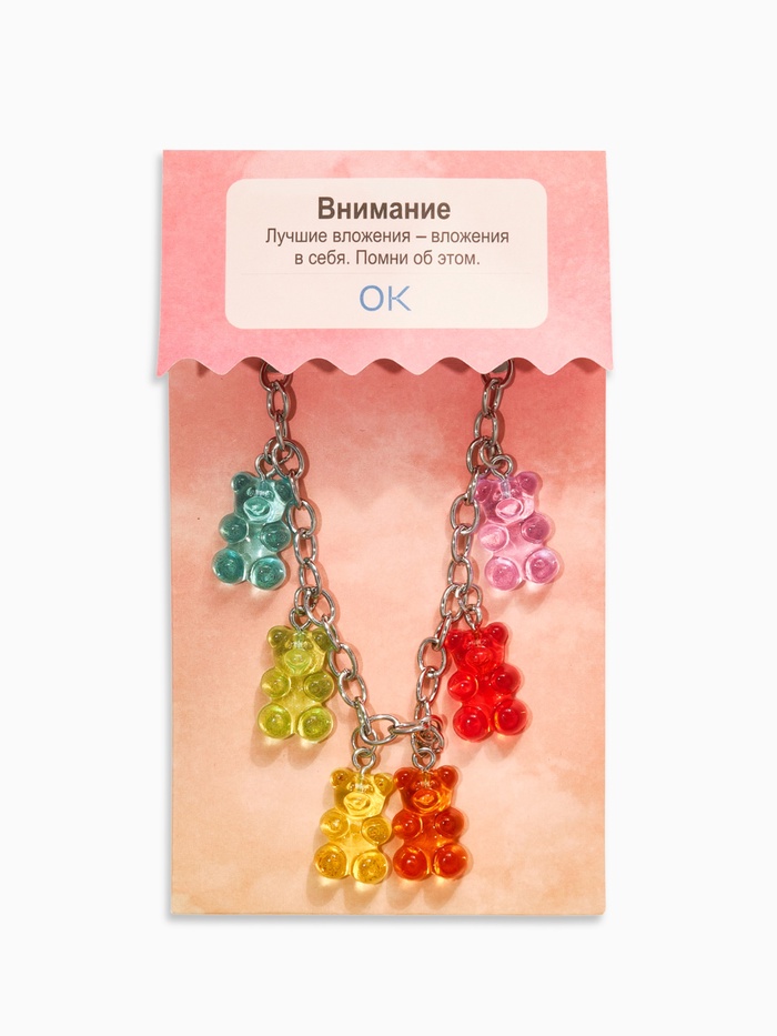 Металлический браслет длиной 17 см, украшенный яркими акриловыми элементами в виде милых мармеладных мишек, станет выразительным дополнением к образу девочки или женщины, ценящей игривость и оригинальность. Серебристый оттенок фурнитуры гармонично сочетается с насыщенной цветовой палитрой — оранжевым, жёлтым, зелёным, голубым, фиолетовым и красным, создавая настроение радости и легкости.