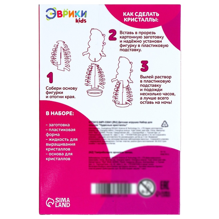 Набор подходит для первого знакомства с химией. Мама или папа помогут приготовить раствор, а девочка будет наблюдать за волшебным превращением. Готовый кристалл станет предметом гордости и украшением детской комнаты.