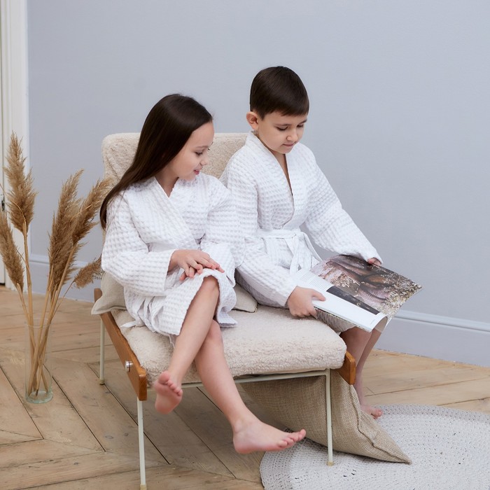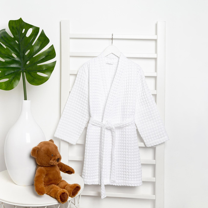 Халат вафельный детский Крошка Я Boho размер 30 (98-104 см), белый, 100% хлопок 290 г/м²
