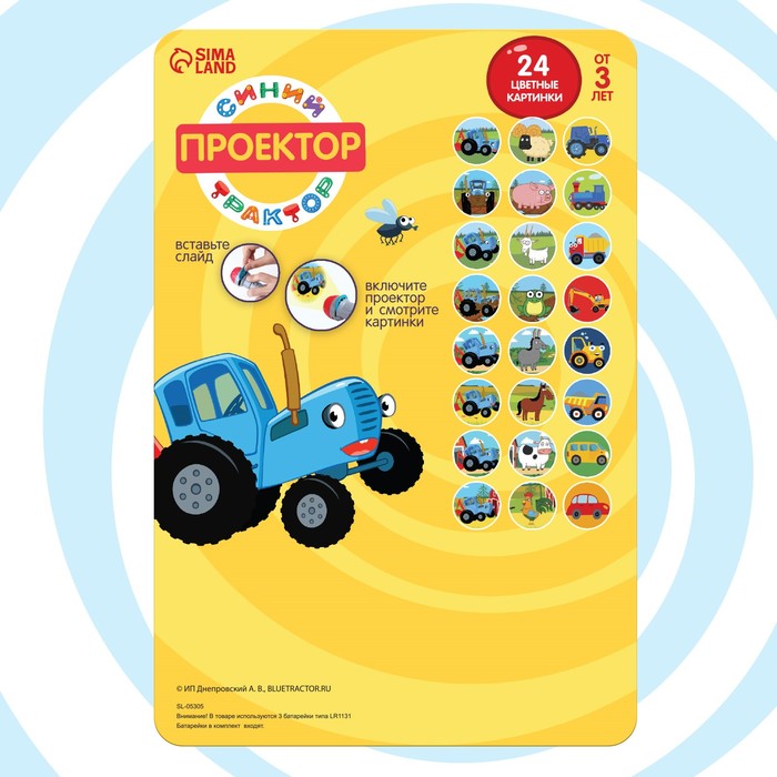 Проектор-фонарик «Синий трактор», свет, цвет синий