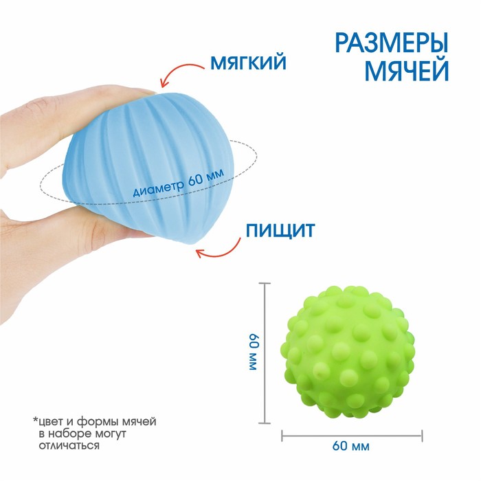Мячики выполнены из приятного на ощупь материала, и малышам очень удобно держать их в руках.
