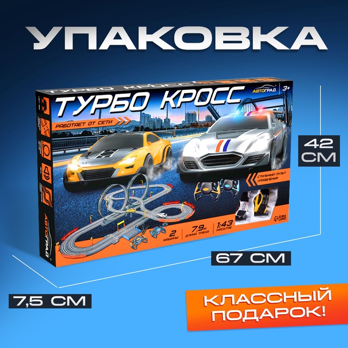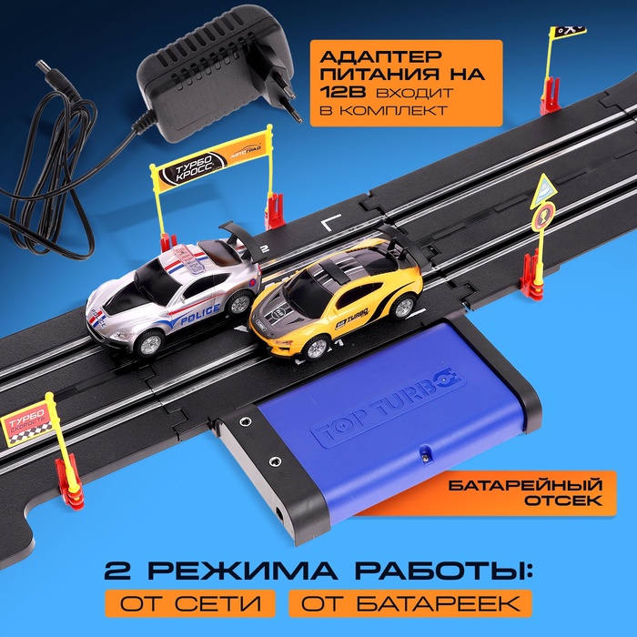 Автотрек Top Turbo, с 2 машинами 1:43, длина 790 см, работает от сети