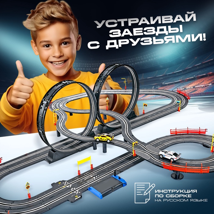 - Машинки едут по трассе и выполняют трюк «Мёртвая петля».