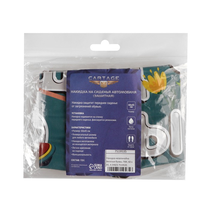 Накидка на сиденье автомобильное Cartage Веселые буквы, ПВХ, 60×45 см, европодвес